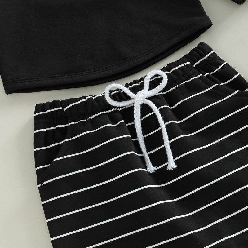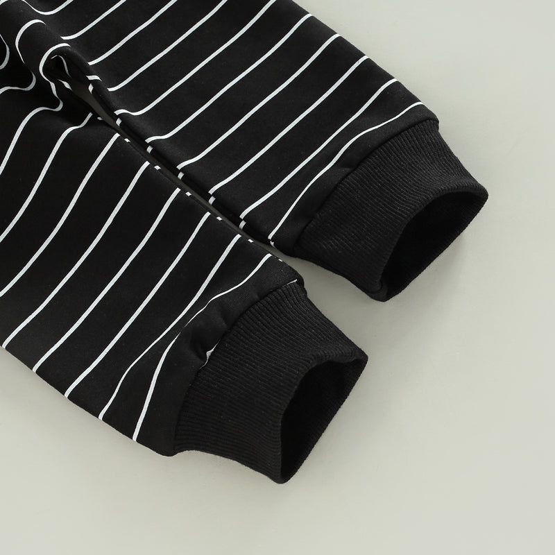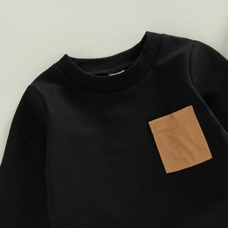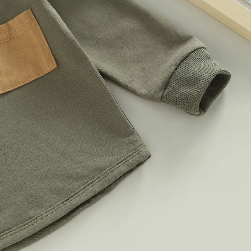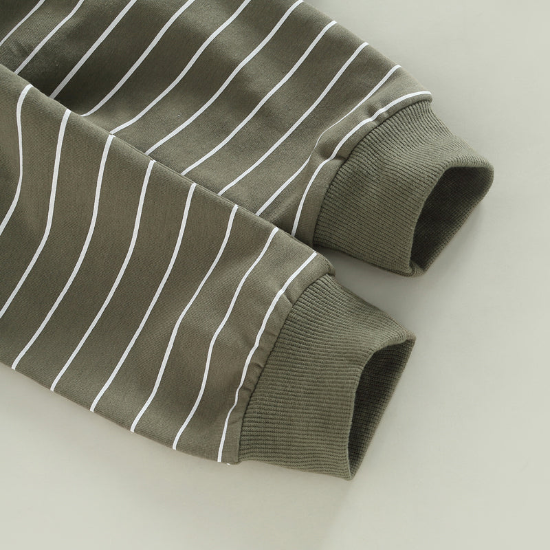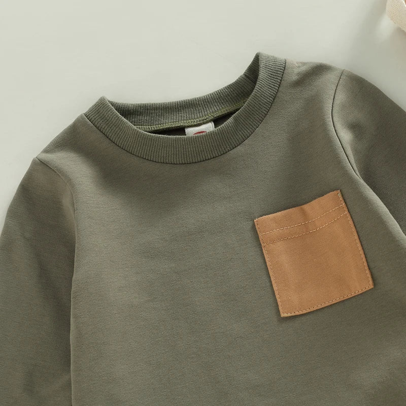 2PCS Toddler Boy Autumn Clothes Long Sleeve Round Neck Tops with Pocket Pullover and Stripe Trousers Tracksuit