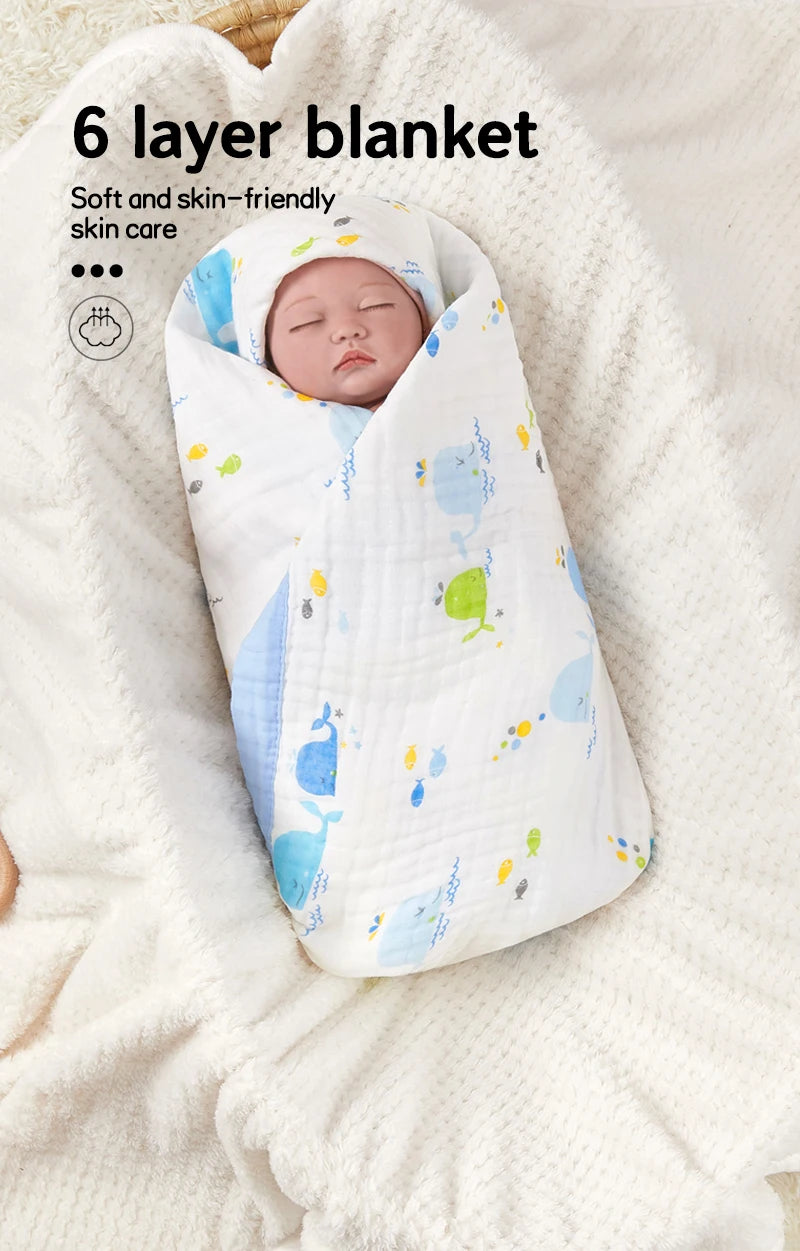 Baby blanket cotton 6 layers newborn swaddle blanket cartoon high-density breathable children's blanket