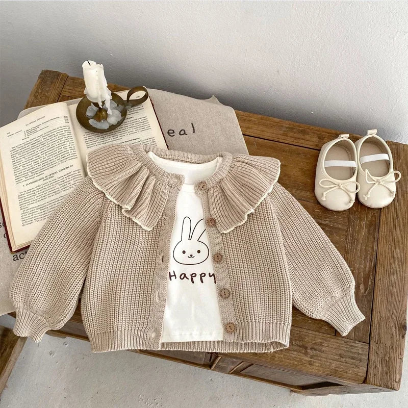 New baby clothing for spring and autumn seasons, 0-3 year old girls, ruffled collar knitted jacket sweater