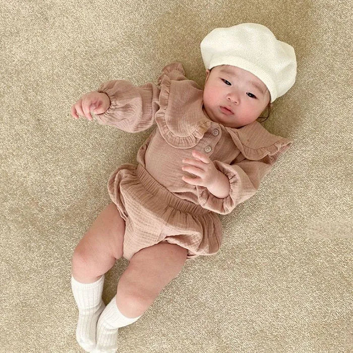 Newborn Baby Girls Clothing Set Ruffle Collar Lapel Top+Bread Pants Casual Suit Autumn Spring Toddler Baby Girl Clothes Suit