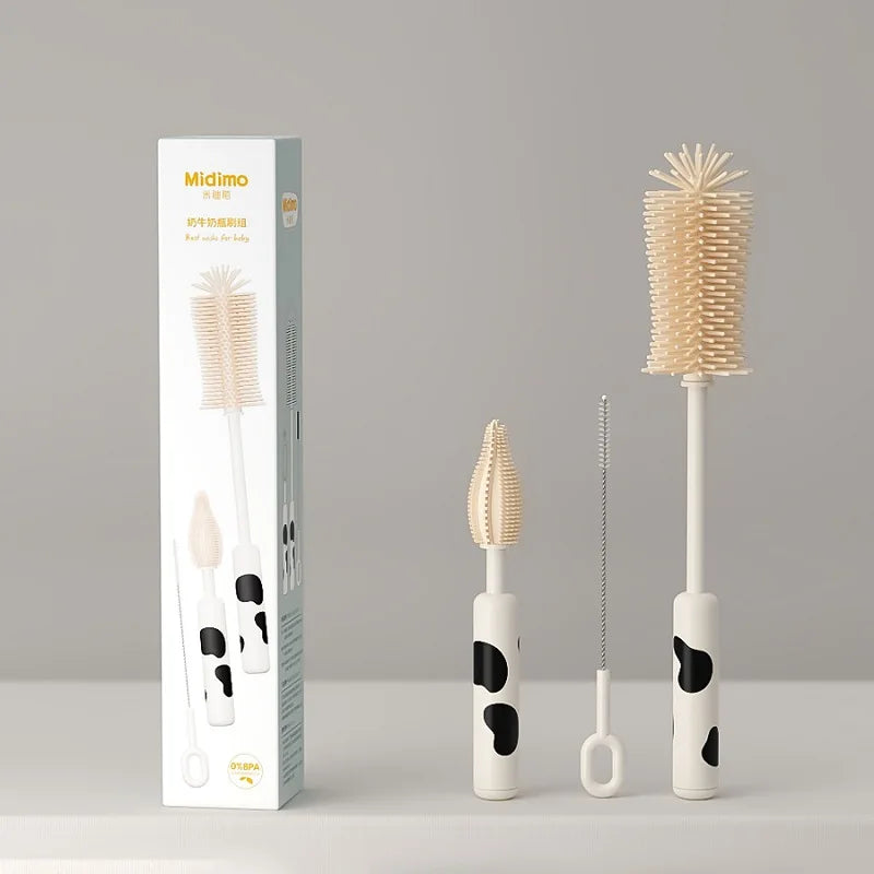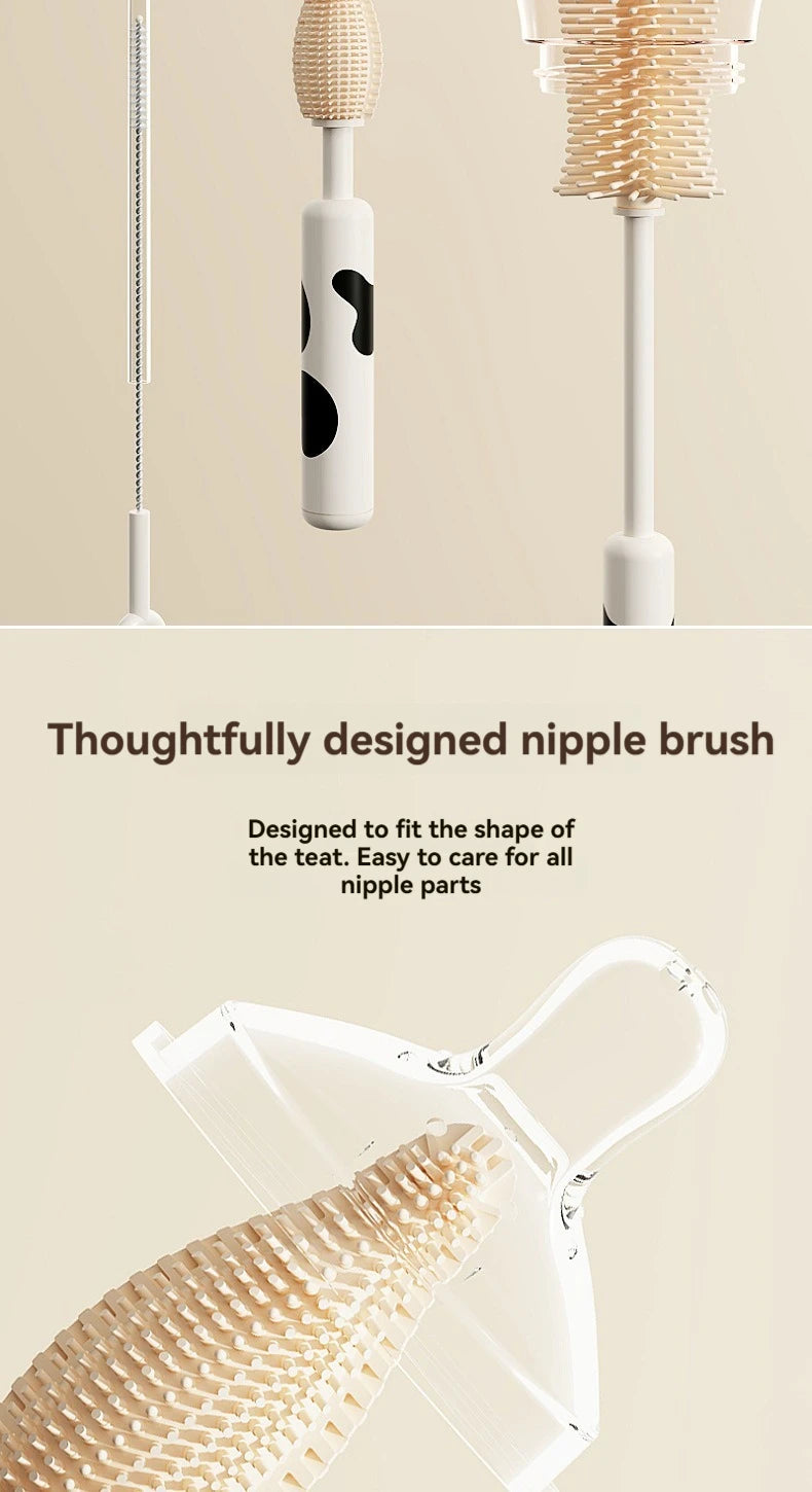 Silicone Baby Bottle Brush, Portable Bottle Brush Set, Baby Bottle Cleaning Brush with Drying Rack