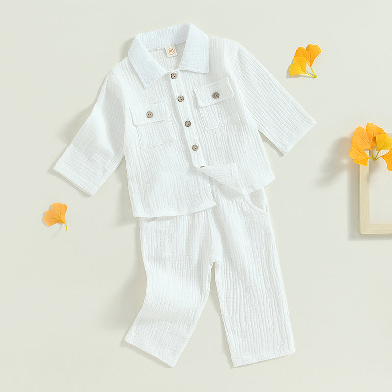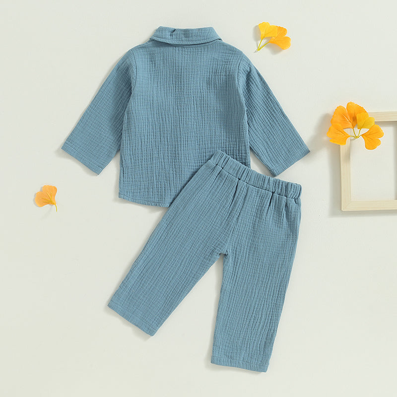 Toddler Boy Linen Outfit Baby Boy Fall Winter Clothes Set Button-Down Shirt Tops Cotton Linen Pants 2PCS