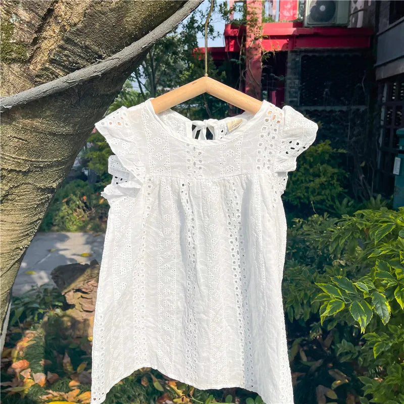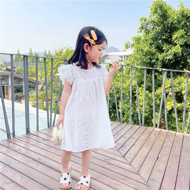 Toddler Girls Dress Cotton Eyelet Lace Beach Sundress Little Girl Kids Summer Clothes